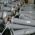 Cast basalt can be cast into virtually any shape. For its use as a pipe work lining the cast basalt is cast into cylinders. The cylinders are typically inserted into a steel shell and secured with cement. The exterior casing can be spiral welded pipe, standard ERW pipe, fiberglass, stainless steel etc. The pipe ends can be flanged, plain for Dressers couplings or grooved for Victaulic couplings. Flanged ends can be adapted to fit up to any existing system.